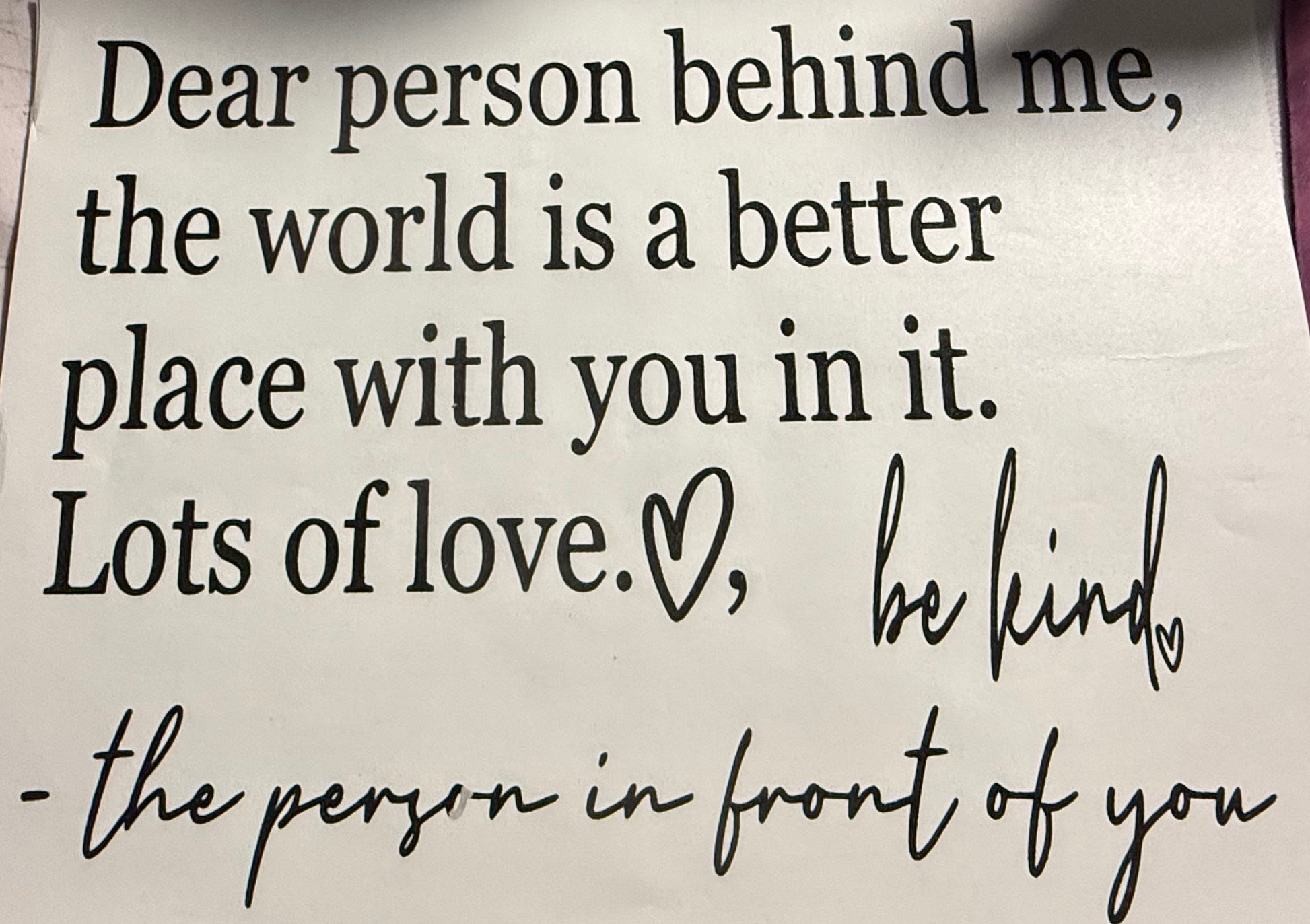DEAR PERSON BEHIND ME