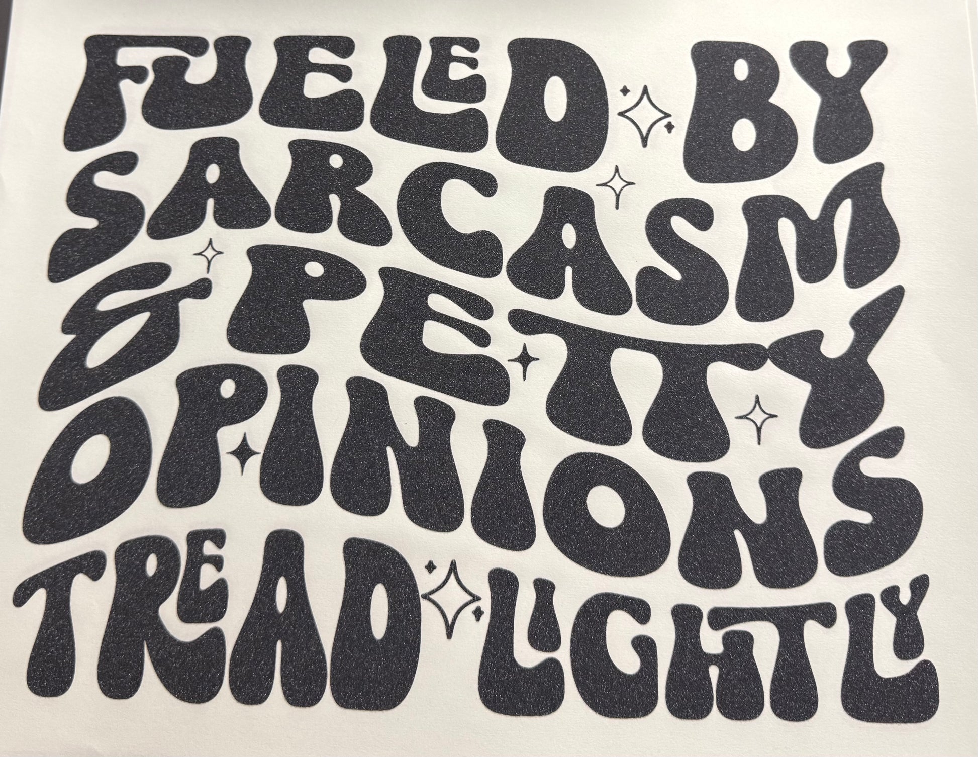 FUELED BY SARCASM & PETTY OPNIONS TREAD LIGHT