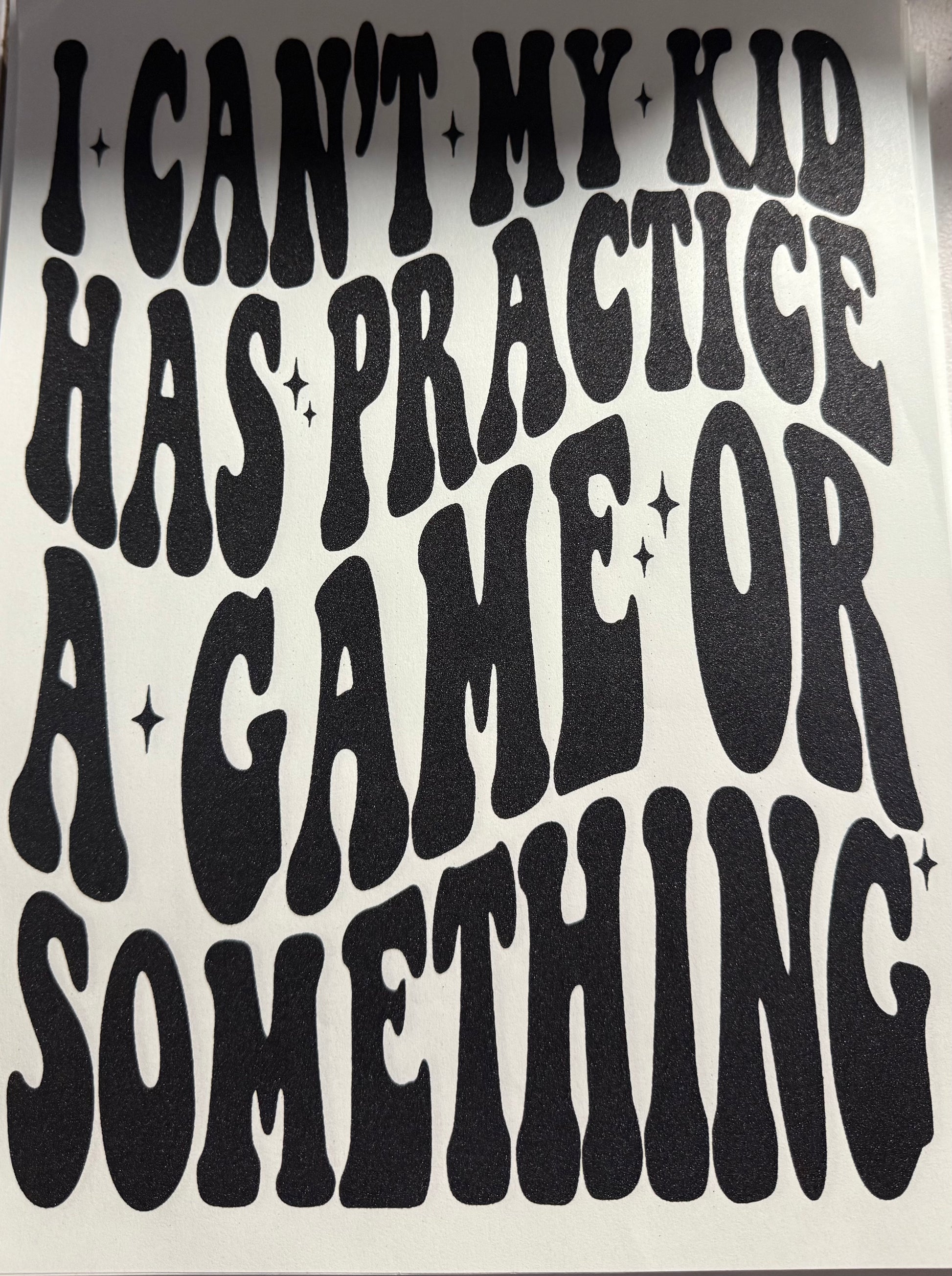 I CANT MY KID HAS PRACTICE A GAME OR SOMETHING